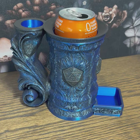 Hand Painted D20/Crit Tower Tankard & Dice Vault, Dice Storage, Can Holder, RPG Game night